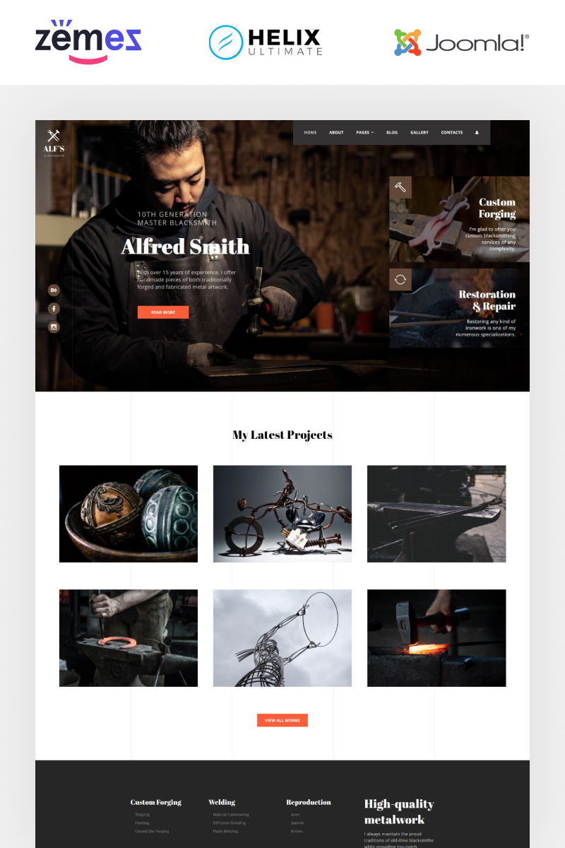 Joomla эффектный шаблон - ALF's - Personal Page Multipage Creative Joomla Template, идеально подойдет для сайтов в сфере Металлургическая компания.