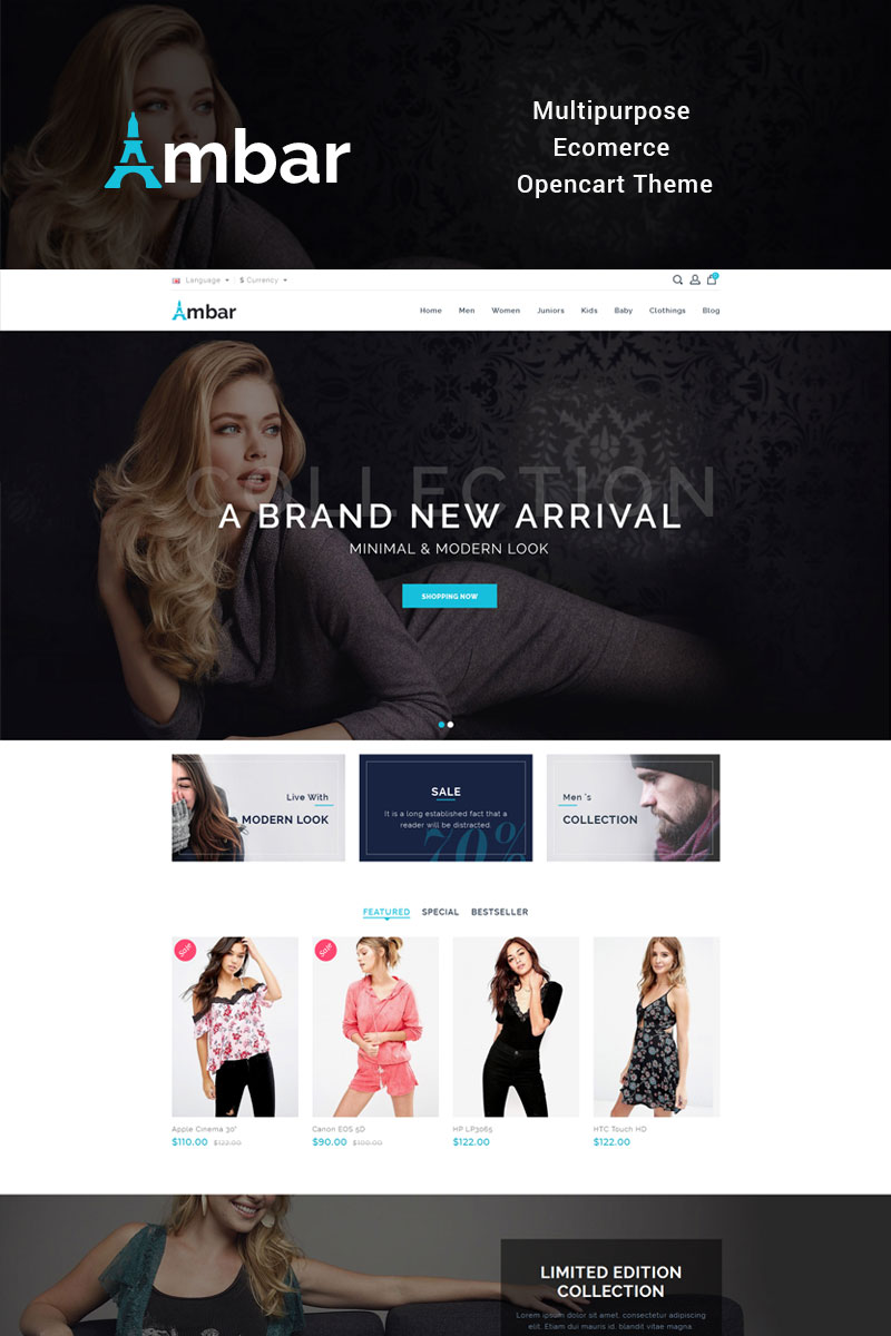 Ambar v1.0 - специально для сайтов на тему Модный магазин. OpenCart интернет-магазин - Responsive Multipurpose OpenCart Template.