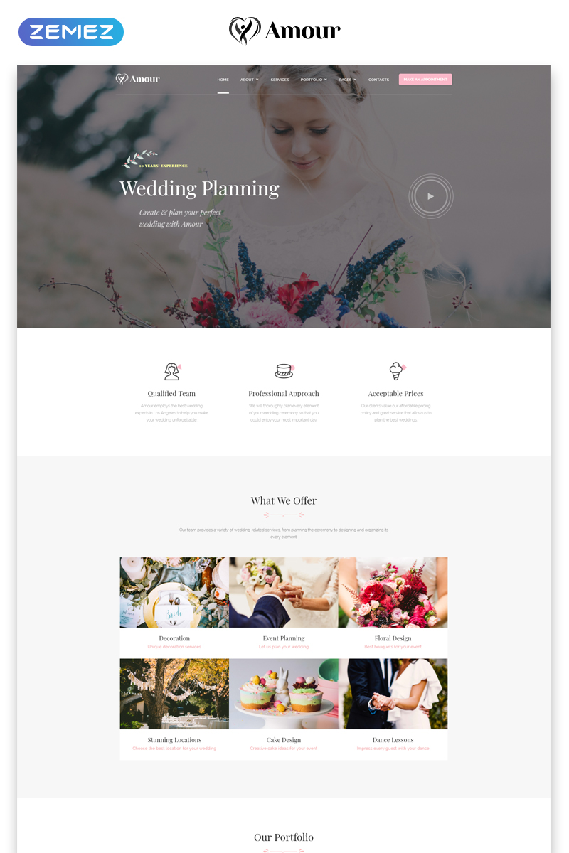 Amour - подойдет для сайтов Свадебный салон. HTML5 шикарный шаблон - Wedding Multipage Clean Bootstrap HTML Website Template.