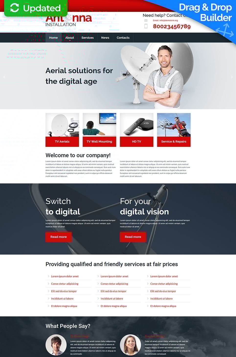 Moto CMS 3 продаваемый шаблон - Satellite TV - Antenna Installations Moto CMS 3 Template, подходит для сайтов Спутниковое ТВ.