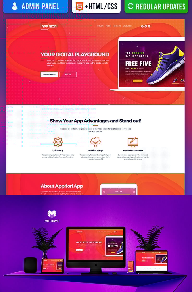 Лендинг шаблон одностраничного сайта - App riori - Mobile App Landing Page Template, хорошо подходит для сайтов в области Маркетинговое агентство.