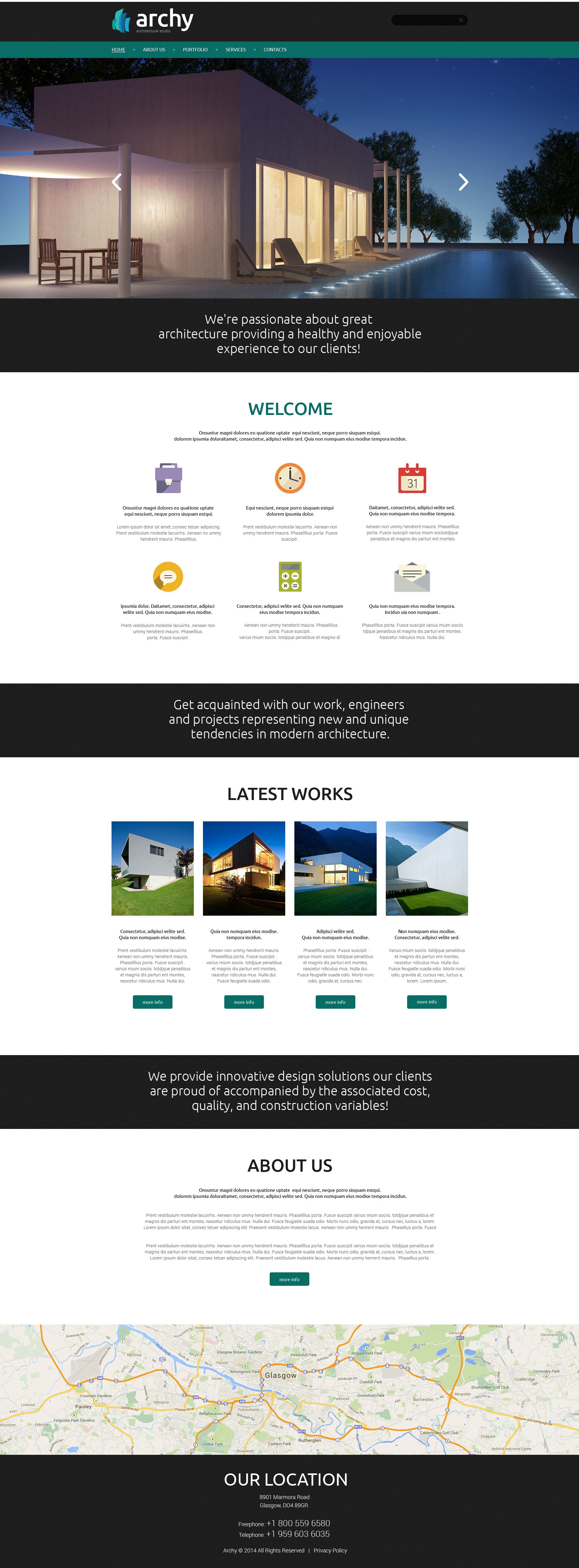 Architecture - хорошо подходит для сайтов Архитектура. HTML5 шаблон - Architecture Responsive Website Template.