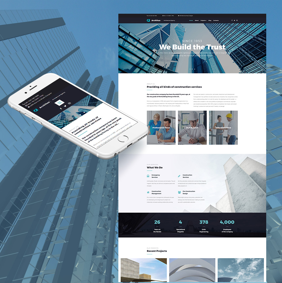 Moto CMS 3 шаблон сайта - Architus - Construction Services Moto CMS 3 Template, превосходно подходит для сайтов в категории Строительные компании.