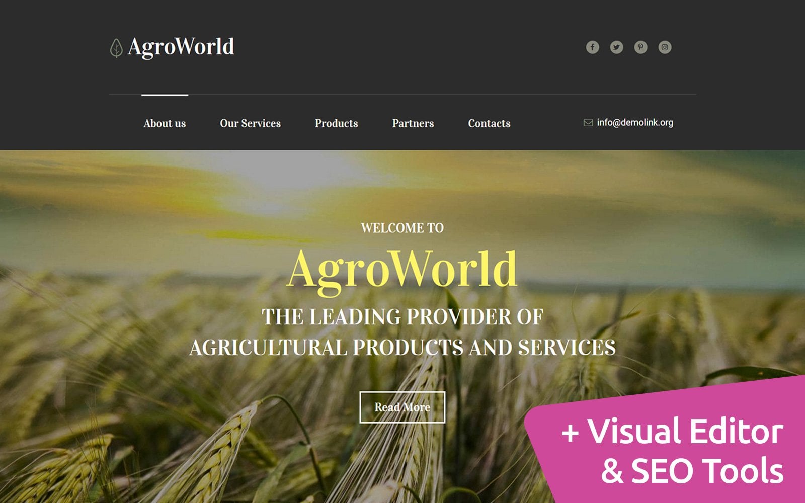 Moto CMS 3 универсальный шаблон - ArgoWorld - Agriculture Moto CMS 3 Template, отлично подходит для сайтов в области Сельское хозяйство.