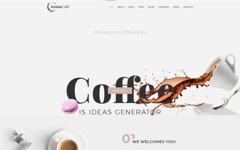 WordPress мультишаблон для сайта - Aromacafe - Coffee Shop WordPress Elementor Theme, подойдет для сайтов Кофейня.