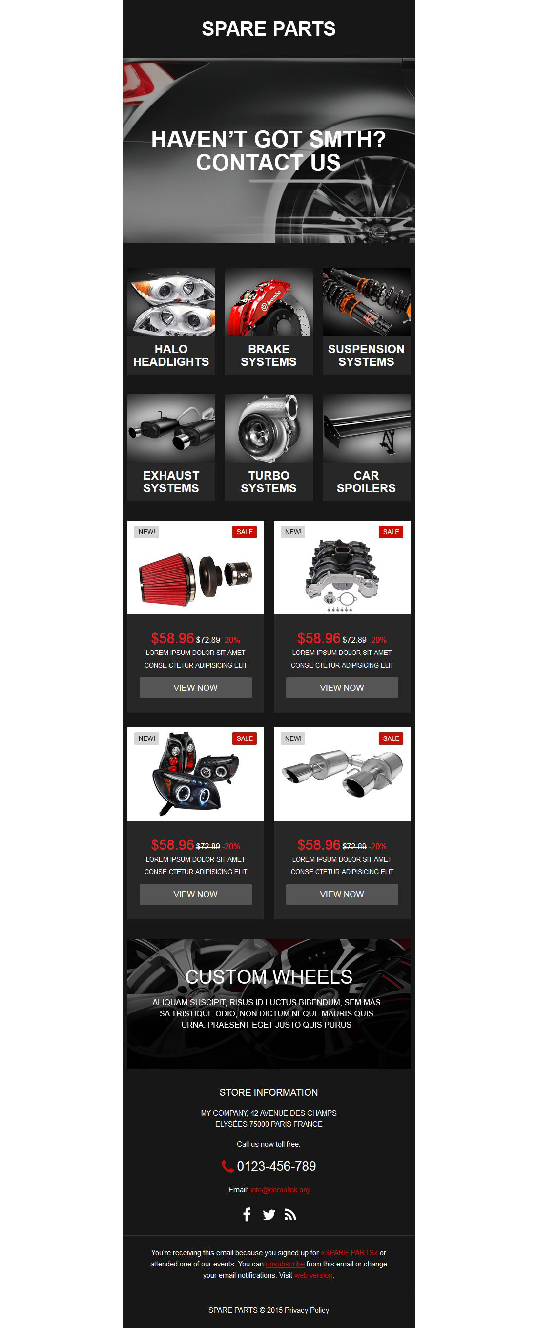Auto Parts - идеально подойдет для сайтов на тему Автозапчасти. Email шаблон для почтовой рассылки - Auto Parts Responsive Newsletter Template.