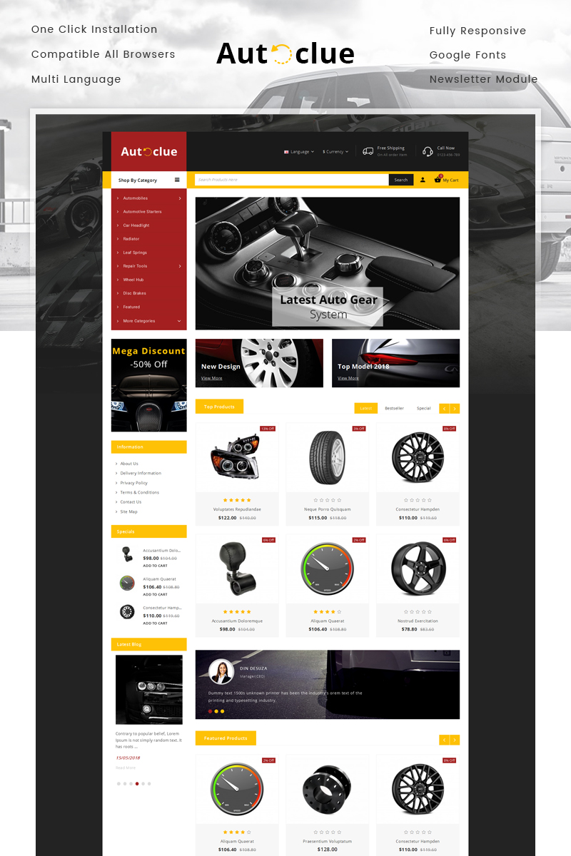 Autoclue - хорошо подходит для сайтов Автомобиль. OpenCart шаблон для интернет-магазина - Spare Parts Store OpenCart Template.