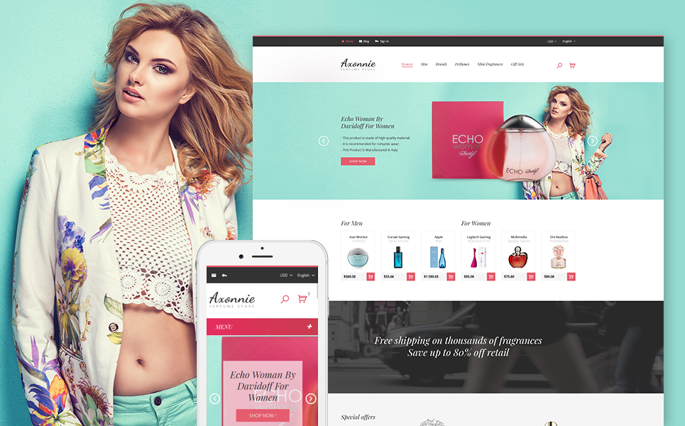 PrestaShop шаблон для интернет-магазина - Axonnie - Perfume Store PrestaShop Theme, хорошо подходит для сайтов в области Магазин косметики.