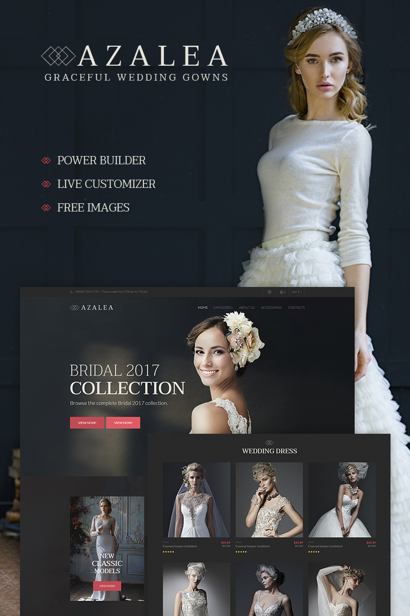 WooCommerce шаблон для интернет-магазина на Wordpress - Azalea - Wedding Store WooCommerce Theme, хорошо подходит для сайтов в категории Женская мода.