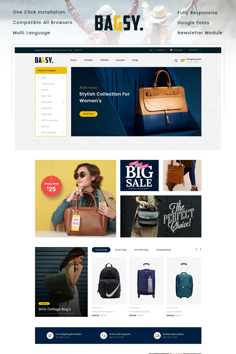 Шаблон магазина сумок opencart - Bagsy - OpenCart шаблон для сайта интернет-магазина