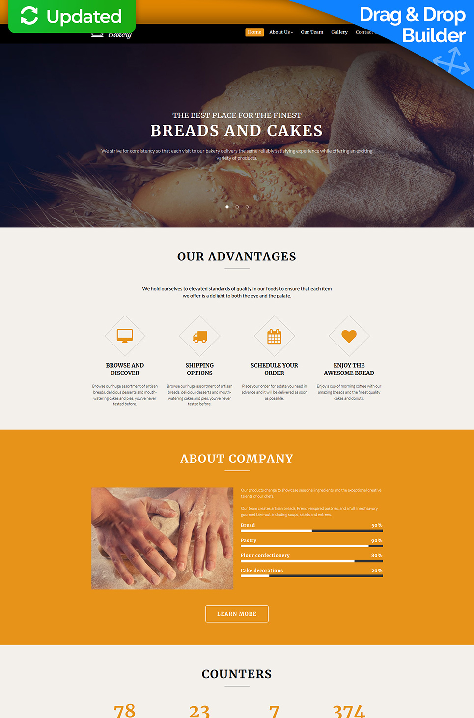 Bakery - хорошо подойдет для сайтов Хлебобулочные изделия. Moto CMS 3 современный шаблон - Bakery Company Moto CMS 3 Template.