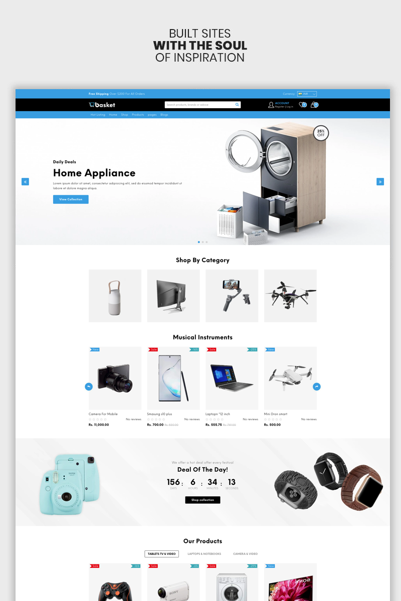 Basket - превосходно подойдет для сайтов в категории Магазин мобильной связи. Shopify шаблон для интернет-магазина - The Electronics & Supermarket Premium Shopify Theme.