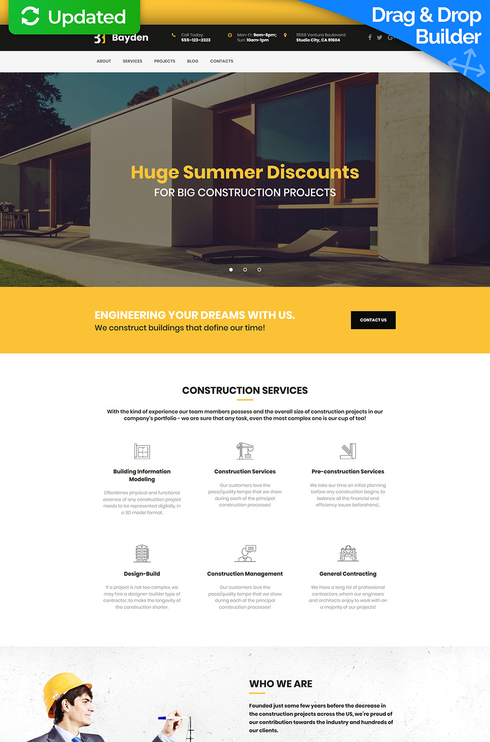 Moto CMS 3 адаптивный шаблон - Bayden - Architecture & Construction Company Moto CMS 3 Template, отлично подойдет для сайтов в категории Строительные компании.