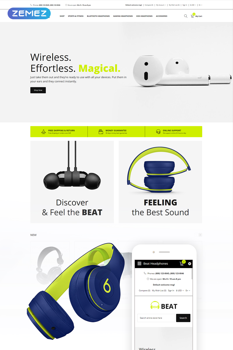 OpenCart интернет-магазин для сайта - Beat - Headphones Store OpenCart Template, идеально подойдет для сайтов в категории Магазин аудио.