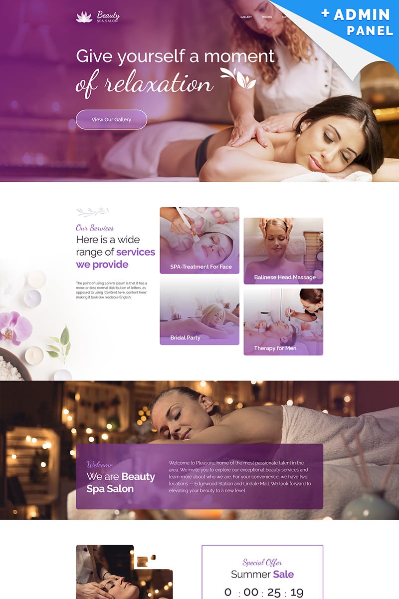 Лендинг шаблон одностраничного сайта - Beauty - Spa Center Landing Page Template, хорошо подойдет для сайтов в области Салон красоты.
