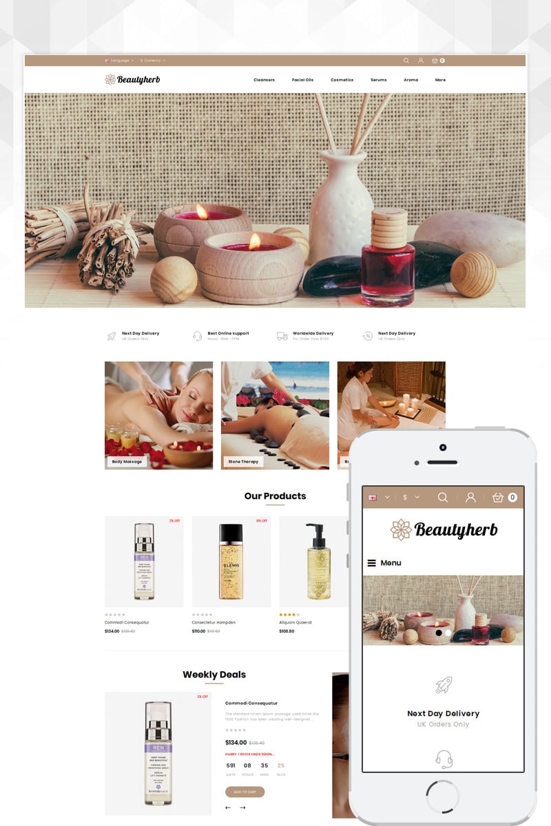 OpenCart интернет-магазин - BeautyHerb - Beauty Store OpenCart Template, специально для сайтов в сфере Магазин косметики.