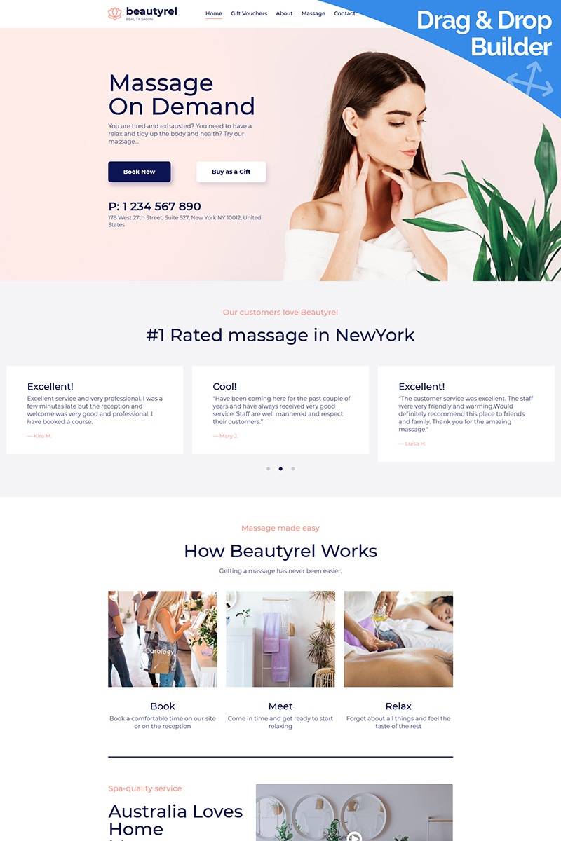 Beautyrel - хорошо подходит для сайтов в категории Салон красоты. Moto CMS 3 отличный шаблон - Relaxing Therapy Moto CMS 3 Template.