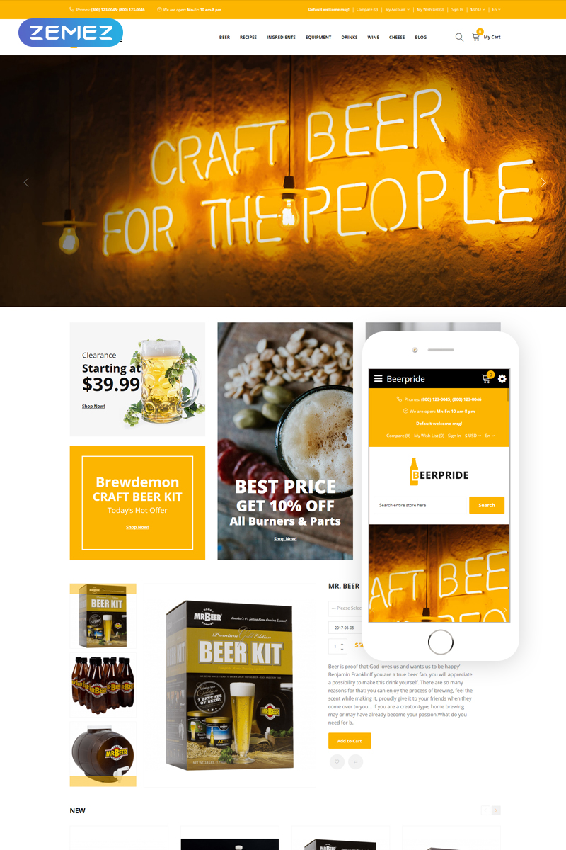 Beerpride - специально для сайтов в сфере Пивоварня. OpenCart шаблон для сайта интернет-магазина - Homebrew Equipment & Supplies OpenCart Template.