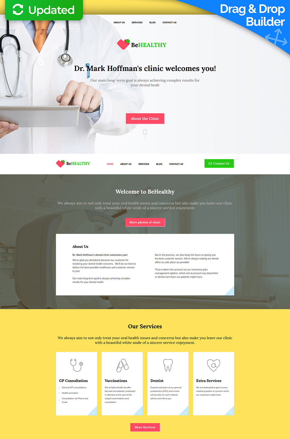 Moto CMS 3 минималистичный шаблон - BeHealthy - Private Clinics Moto CMS 3 Template, отлично подойдет для сайтов на тему Медицина.