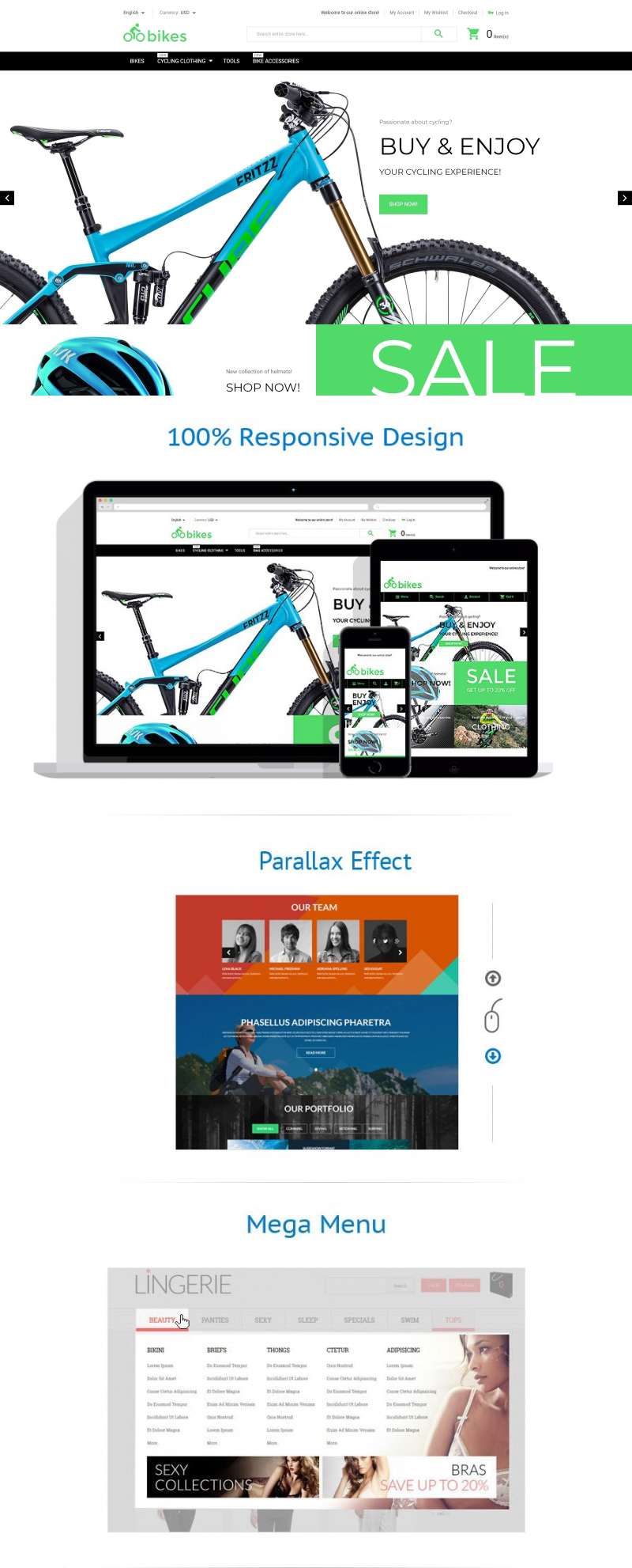 BMX - подойдет для сайтов на тему BMX. Magento продаваемый шаблон - Bike Shop Magento Theme.