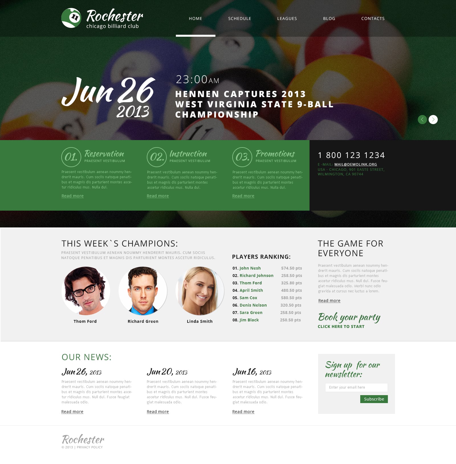 Последние добавленые темы и шаблоны сайтов в категории - Бильярд