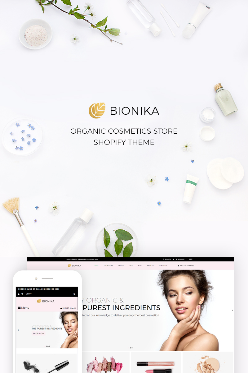 Shopify интернет-магазин - Bionika - Organic Cosmetics Store Shopify Theme, подходит для сайтов на тему Магазин косметики.