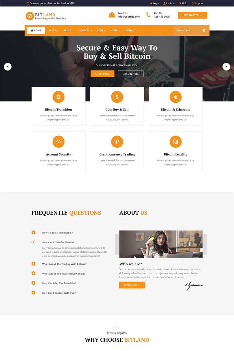 Bitland - превосходно подходит для сайтов Консалтинг. HTML5 шаблон сайта - Bitcoin And Crypto Currency Website Template.