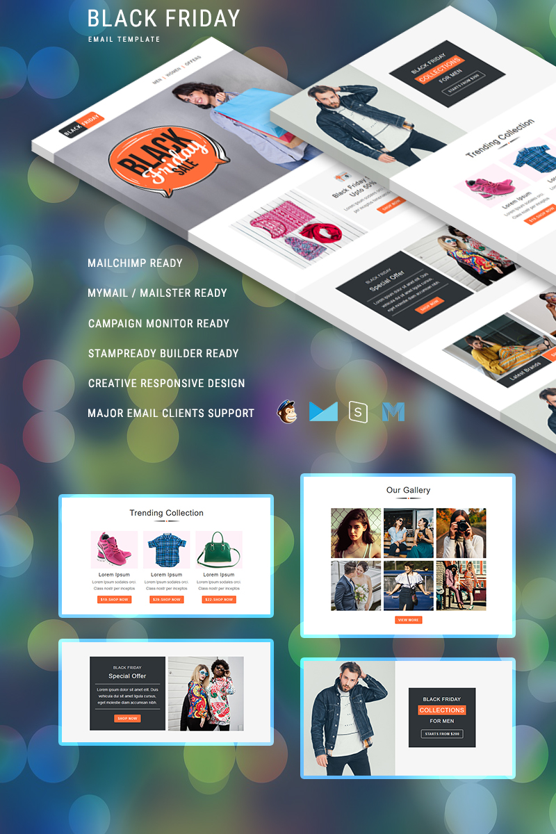 Fashion - специально для сайтов Мода. Email шаблон почтовой рассылки - Black Friday – Multipurpose Responsive Newsletter Template.