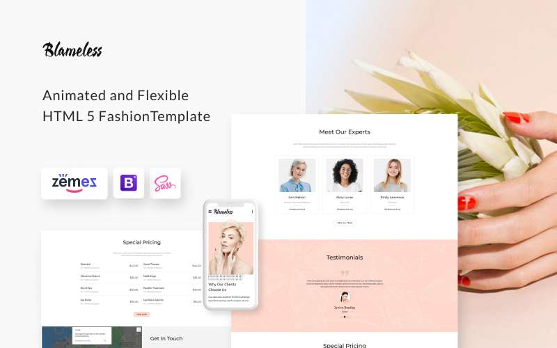 Blameless - превосходно подходит для сайтов на тему Салон красоты. HTML5 минималистичный шаблон - Nail Salon Multipage HTML5 Website Template.