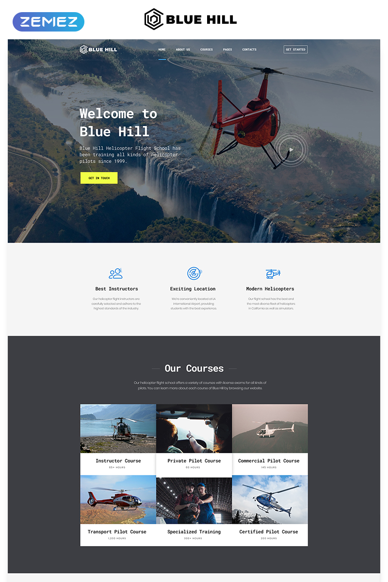 Blue Hill - хорошо подходит для сайтов в сфере Лётная школа. HTML5 продаваемый шаблон - Flight School Multipage Creative HTML Website Template.