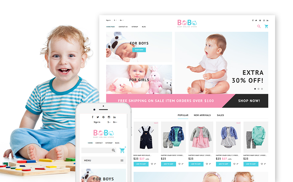 PrestaShop интернет-магазин - BoBo - Baby Online Store PrestaShop Theme, хорошо подойдет для сайтов в области Детские товары.