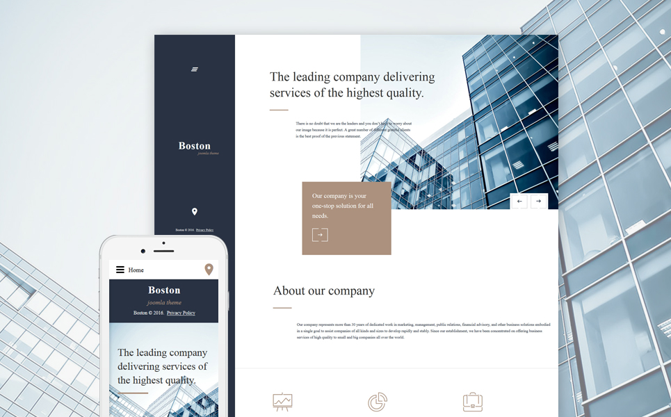 Business & Services - хорошо подходит для сайтов в области Бизнес и услуги. Joomla адаптивный шаблон - Boston Joomla Template.