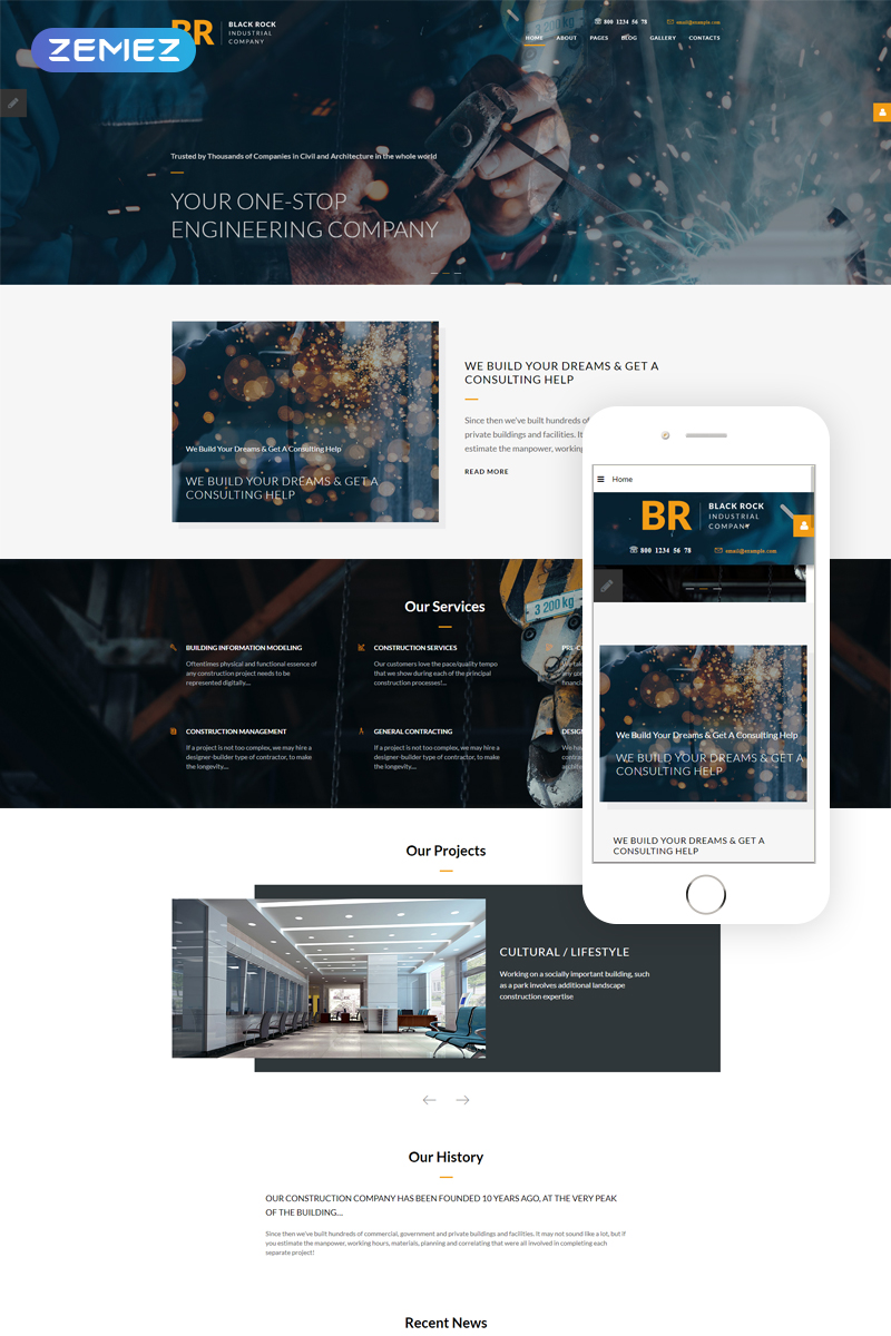 BR - подходит для сайтов Промышленность. Joomla шаблон - Industrial Company Professional Parallax Joomla Template.
