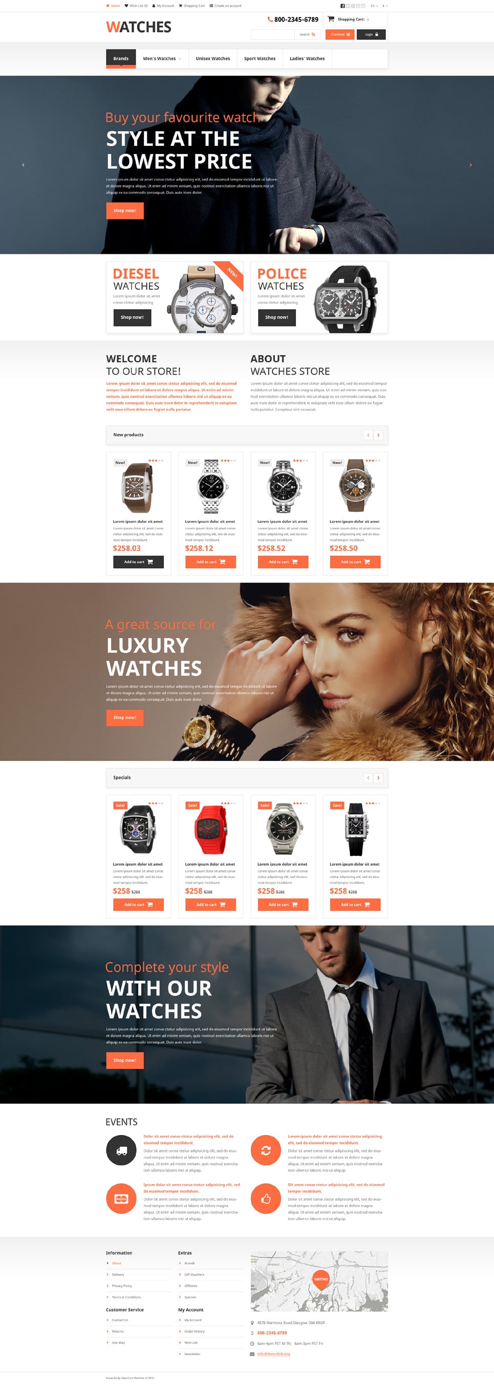 Watches - превосходно подходит для сайтов в категории Часы. OpenCart интернет-магазин - Brand Watches OpenCart Template.