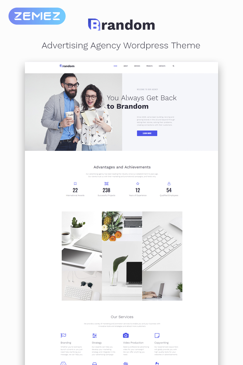 Brandom - отлично подходит для сайтов в области Рекламное агентство. WordPress шаблон 2021 года - Advertising Agency Multipurpose Minimal WordPress Elementor Theme.