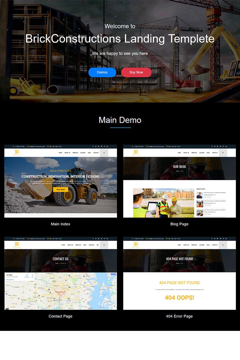 Лендинг шаблон одностраничного сайта - Brick - Construction HTML5 Template Landing Page Template, превосходно подходит для сайтов в сфере Недвижимость.