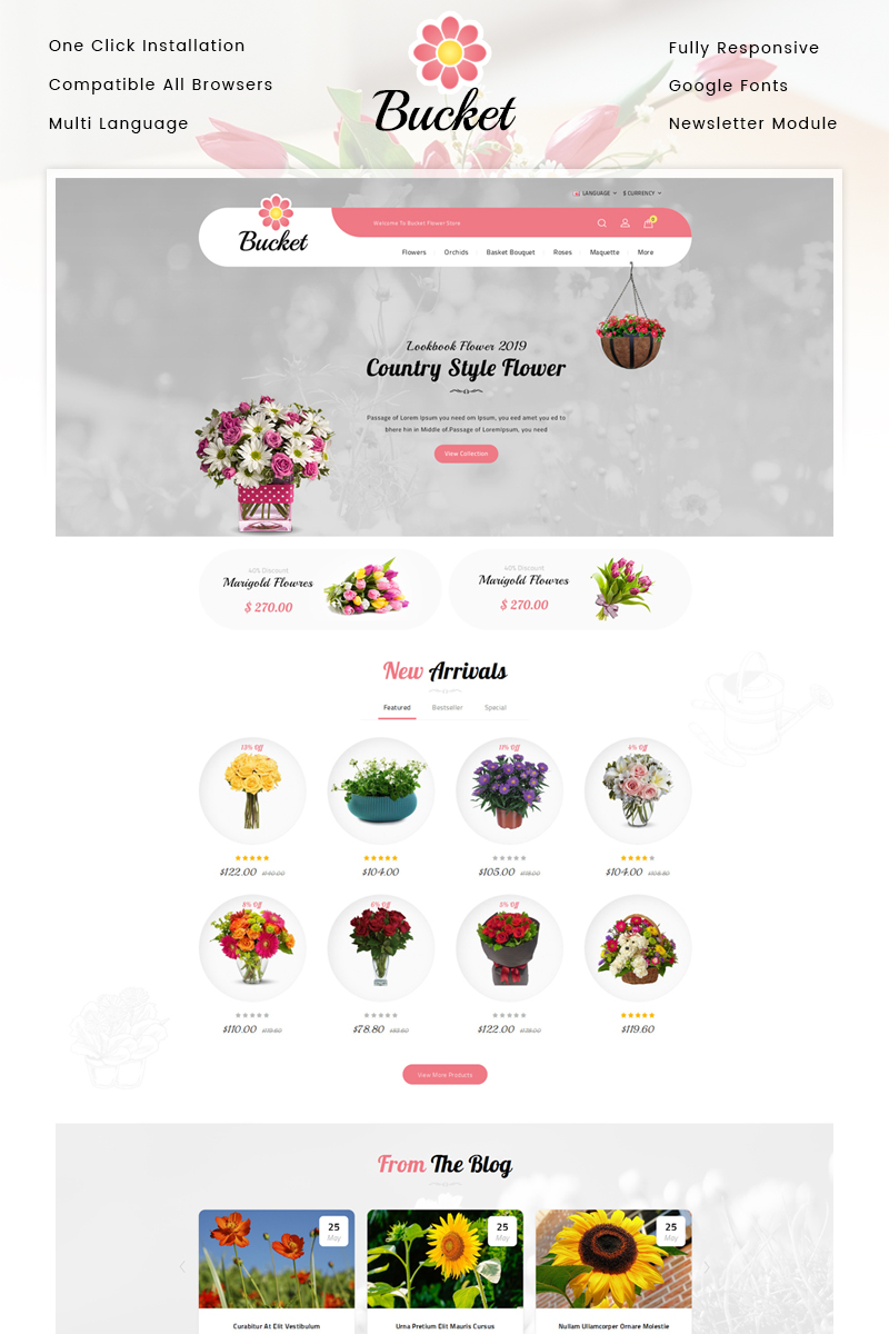 Furniture - подходит для сайтов Мебель. OpenCart интернет-магазин для сайта - Bucket Flowers Store OpenCart Template.