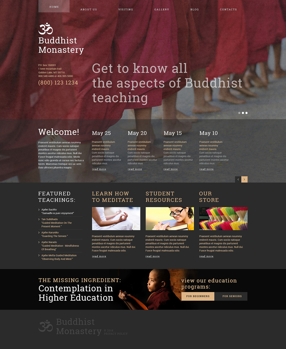 Joomla минималистичный шаблон - Buddhist - Buddhist Monastery Joomla Template, отлично подходит для сайтов в сфере Буддизм.