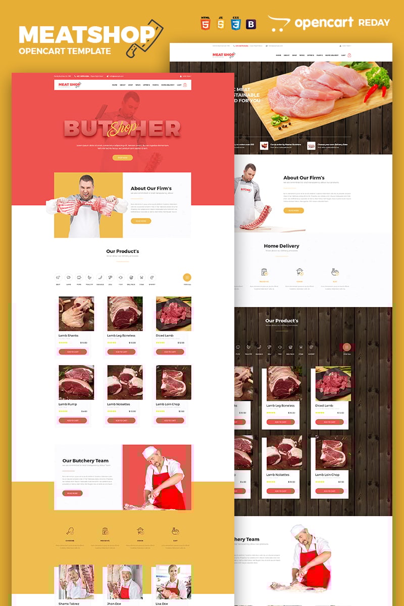 Butcher - отлично подойдет для сайтов в сфере Магазин еды. OpenCart шаблон интернет-магазина - Meat Shop eCommerce OpenCart Template.