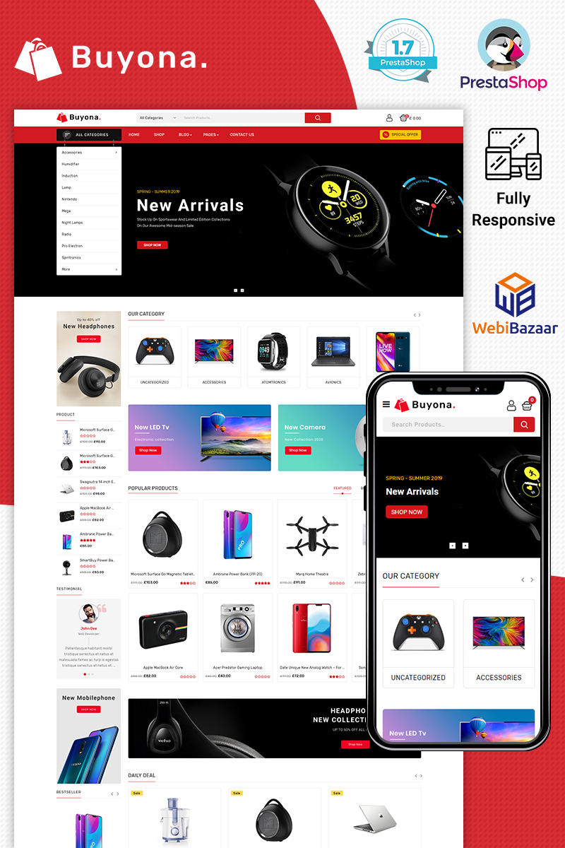 PrestaShop шаблон для сайта интернет-магазина - Buyona - Supermart Electronic Template PrestaShop Theme, подходит для сайтов в сфере Магазин мобильной связи.
