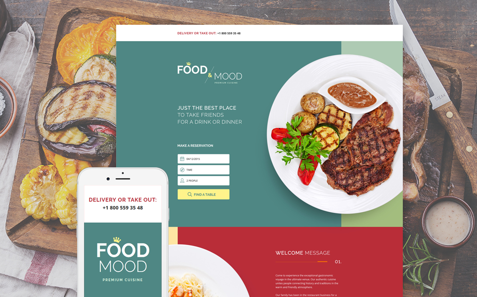 Cafe and Restaurant - подходит для сайтов на тему Кафе и ресторан. Лендинг шаблон для одностраничного сайта - Cafe and Restaurant Landing Page Template.
