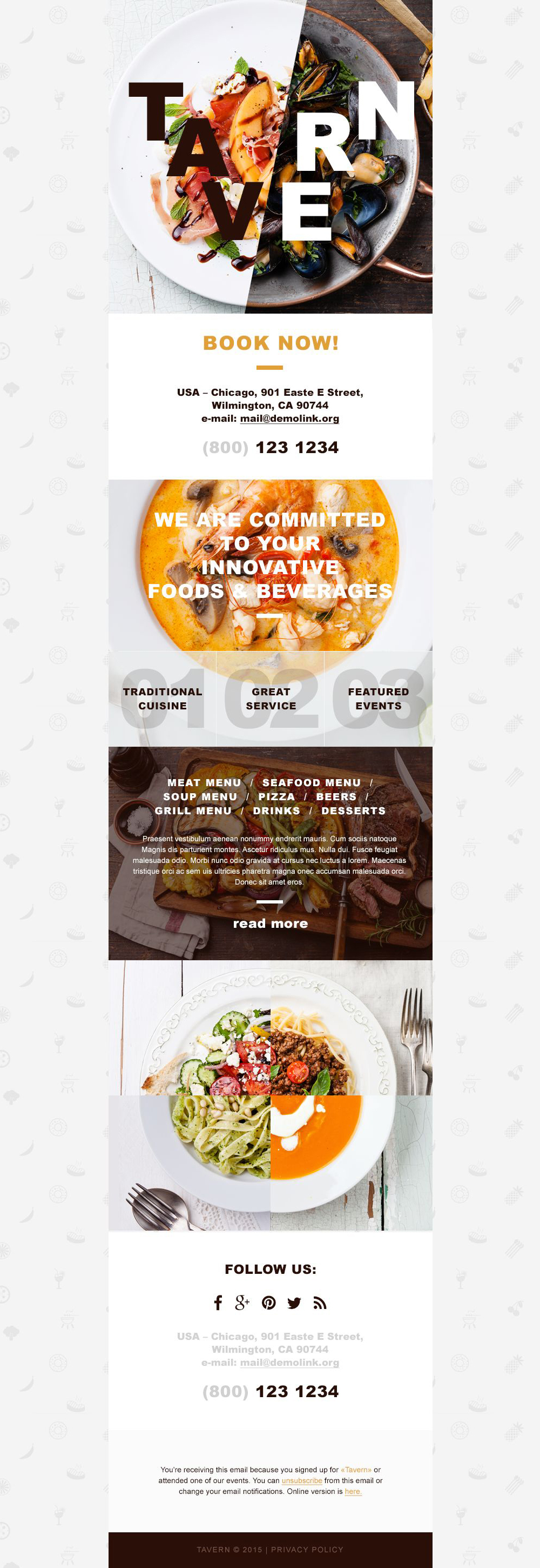 отзывчивый шаблон информационного бюллетеня кафе и ресторанов