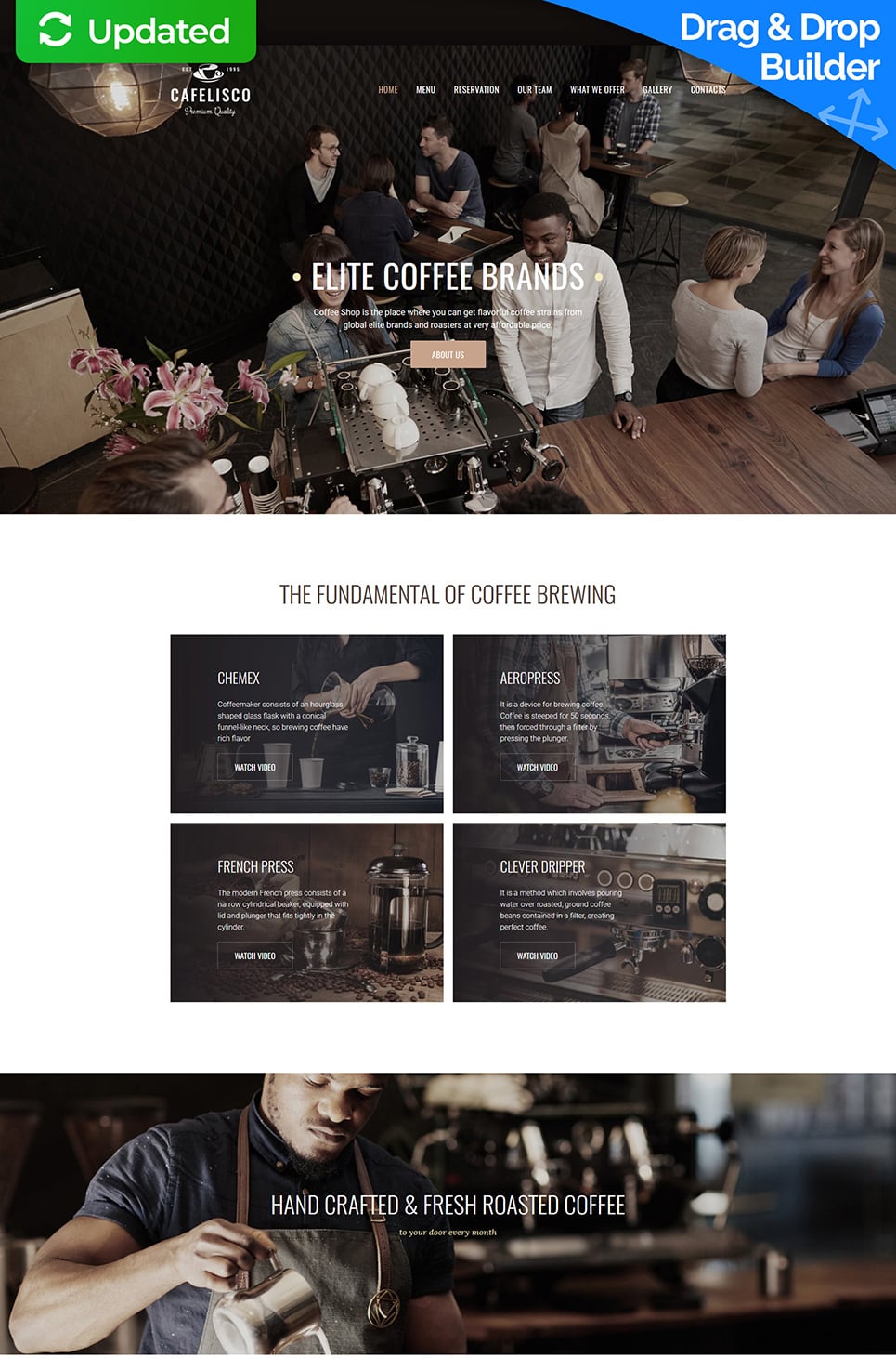 Cafelisco - превосходно подходит для сайтов на тему Кофейня. Moto CMS 3 популярный шаблон - Premium Moto CMS 3 Template.
