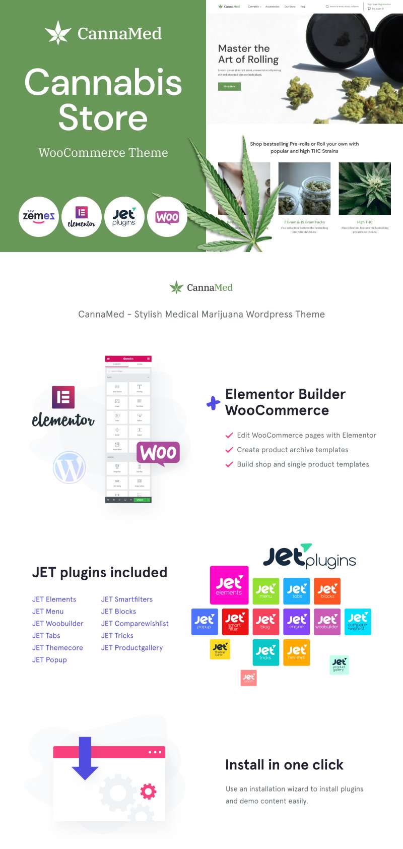 CannaMed - идеально подходит для сайтов Аптека. WooCommerce шаблон интернет-магазина Wordpress - Stylish Medical Marijuana WooCommerce Theme.