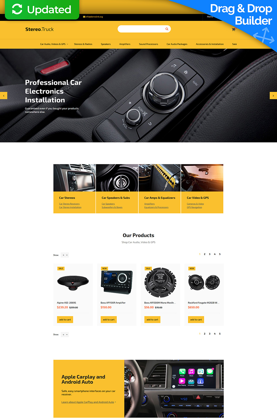 MotoCMS Ecommerce интернет-магазин для сайта - Car Audio - Car Accessories MotoCMS Ecommerce Template, превосходно подойдет для сайтов на тему Аудио для авто.