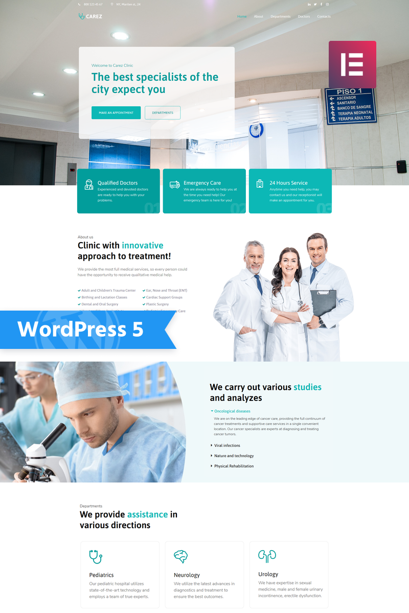 WordPress шаблон сайта - Carez - Medical Services Multipurpose Clean WordPress Elementor Theme, идеально подходит для сайтов на тему Медицина.
