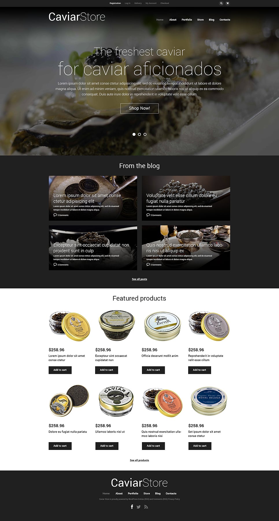 Food Store - подходит для сайтов в категории Магазин еды. WooCommerce интернет-магазин Wordpress - Caviar Online Store WooCommerce Theme.