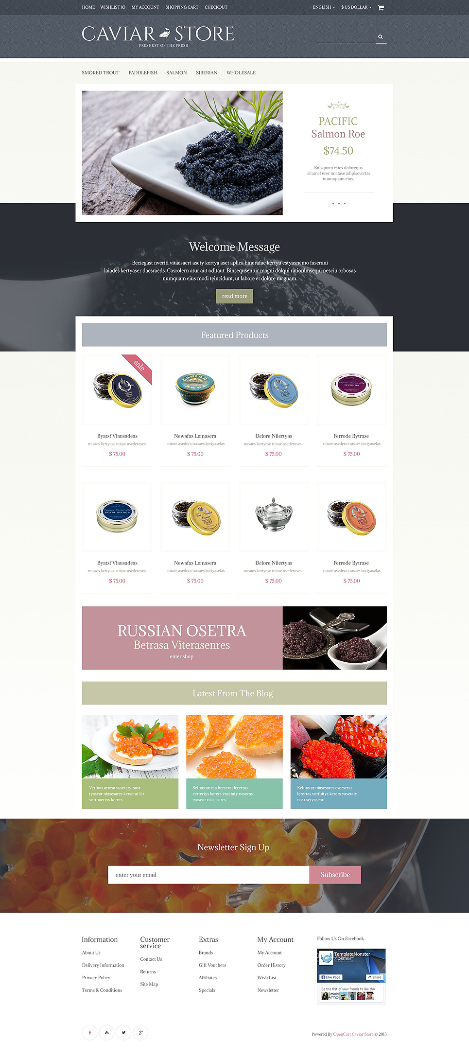 OpenCart шаблон для интернет-магазина - Food Store - Caviar Store OpenCart Template, подойдет для сайтов в категории Магазин еды.