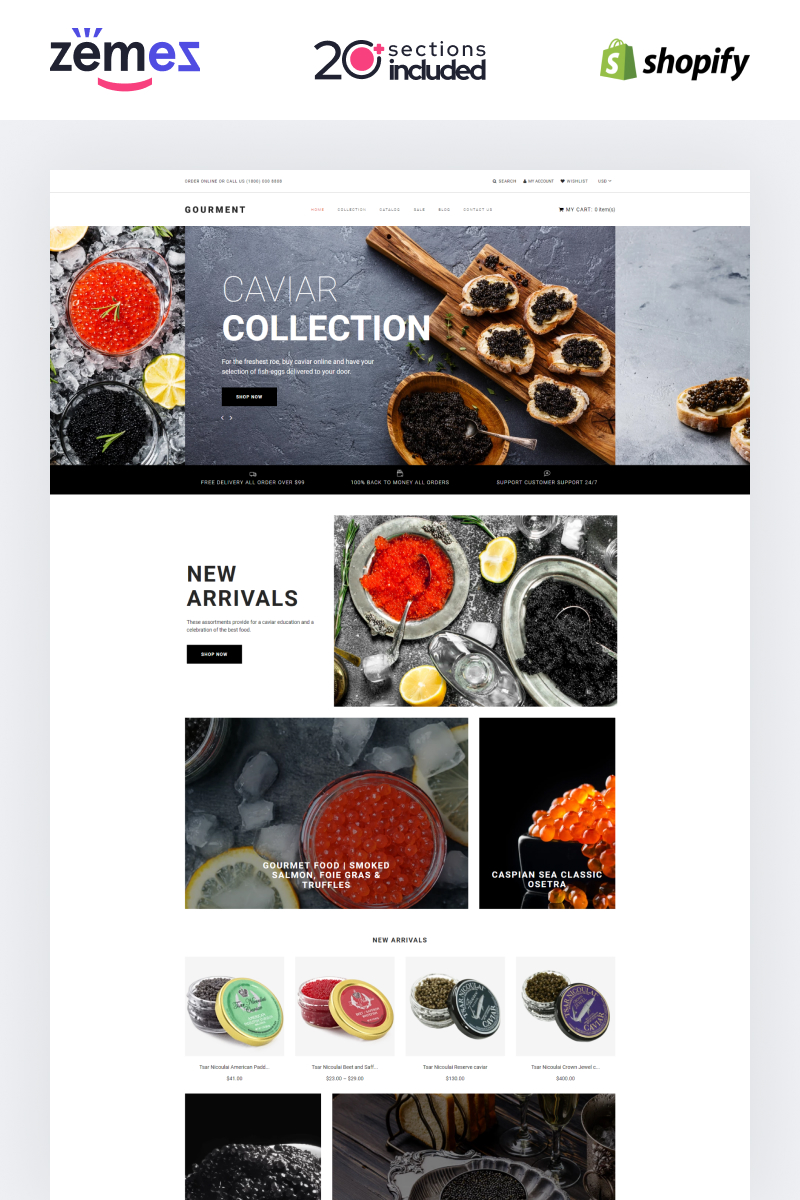 Grocery Store - хорошо подойдет для сайтов на тему Продуктовый магазин. Shopify шаблон интернет-магазина - Caviar Store Template Shopify Theme.