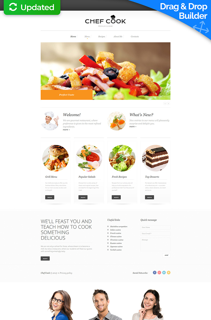 Moto CMS 3 отличный шаблон - Chef - Chef Moto CMS 3 Template, превосходно подходит для сайтов в области Шеф-повар.